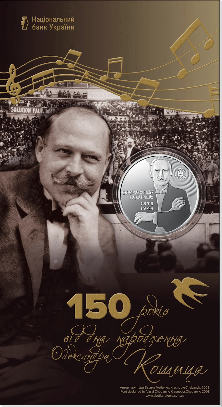 Пам’ятна монета присвячена видатному українському хоровому диригенту, композитору, етнографу та педагогу Олександру Кошицю (1875–1944), який відіграв ключову роль у популяризації української музичної культури на міжнародній арені. Пам’ятна монета вшановує творчу спадщину митця, який на запрошення голови Директорії УНР Симона Петлюри очолив Українську республіканську капелу. Упродовж 1919–1924 років під керівництвом Олександра Кошиця капела здійснила гастрольне турне 17 країнами світу, давши понад 600 концертів. Саме тоді світ уперше почув “Щедрика” Миколи Леонтовича – твір, що згодом став всесвітньо відомим різдвяним хітом “Carol of the Bells”.