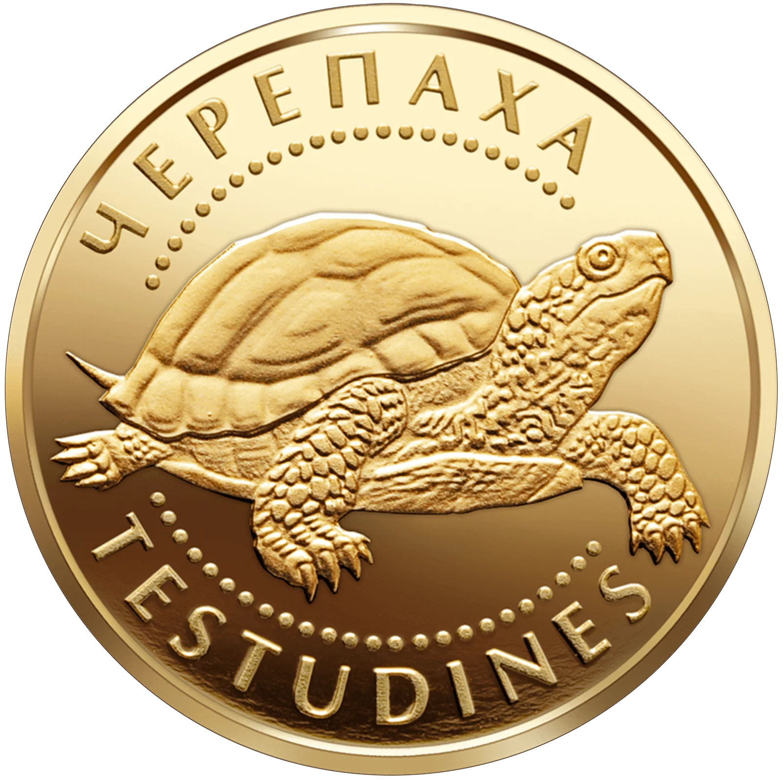 На реверсі монети зображено черепаху та розміщено півколом написи: ЧЕРЕПАХА (угорі), TESTUDINES (унизу).