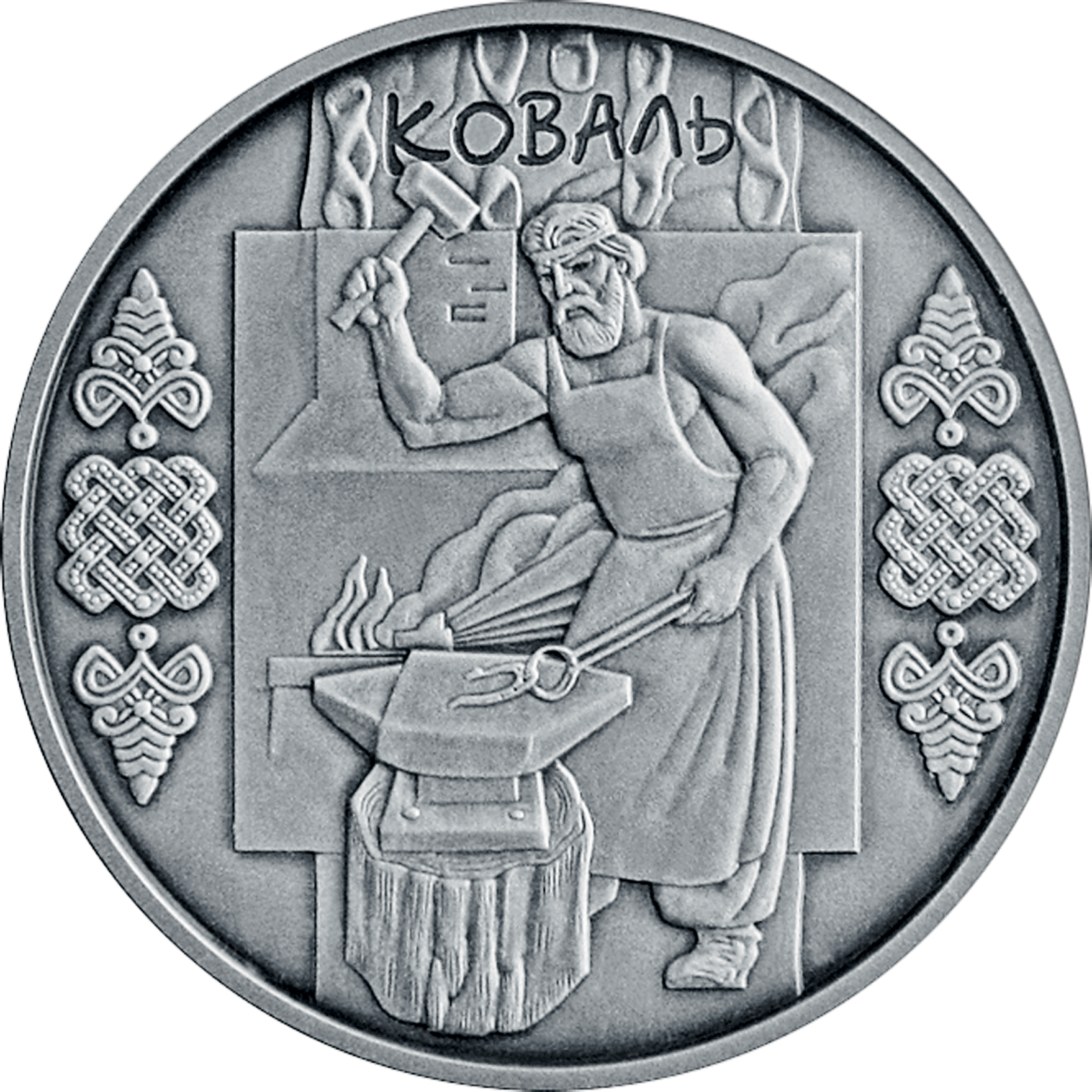 На реверсі монети зображено коваля за роботою. Угорі на стилізованому тлі розміщено напис КОВАЛЬ, з обох боків центральної композиції - декоративні вставки.