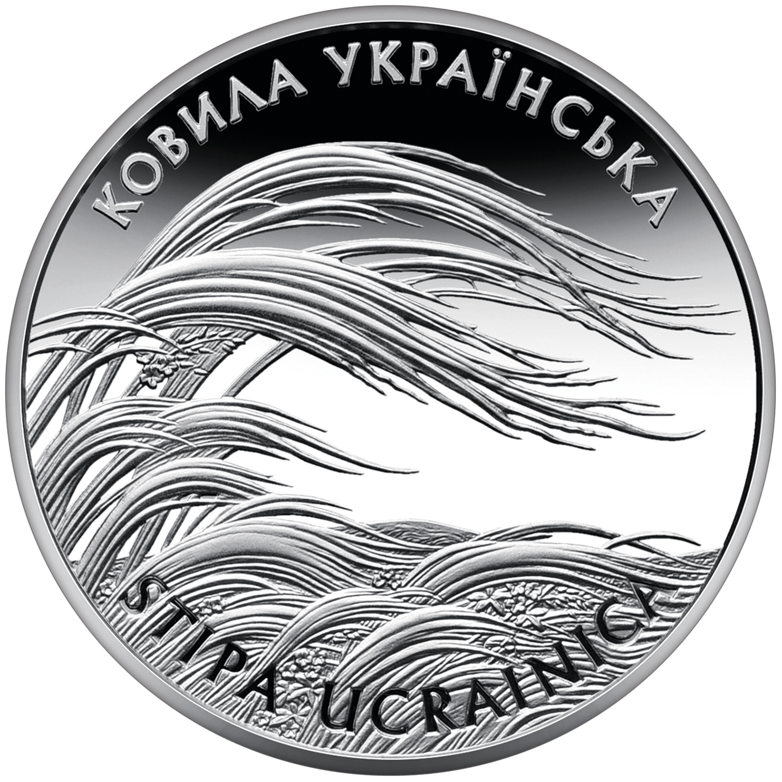 На реверсі монет зображено ковилу півколом розміщено написи: КОВИЛА УКРАЇНСЬКА (угорі) та STIPA UСRAINICA (унизу).
