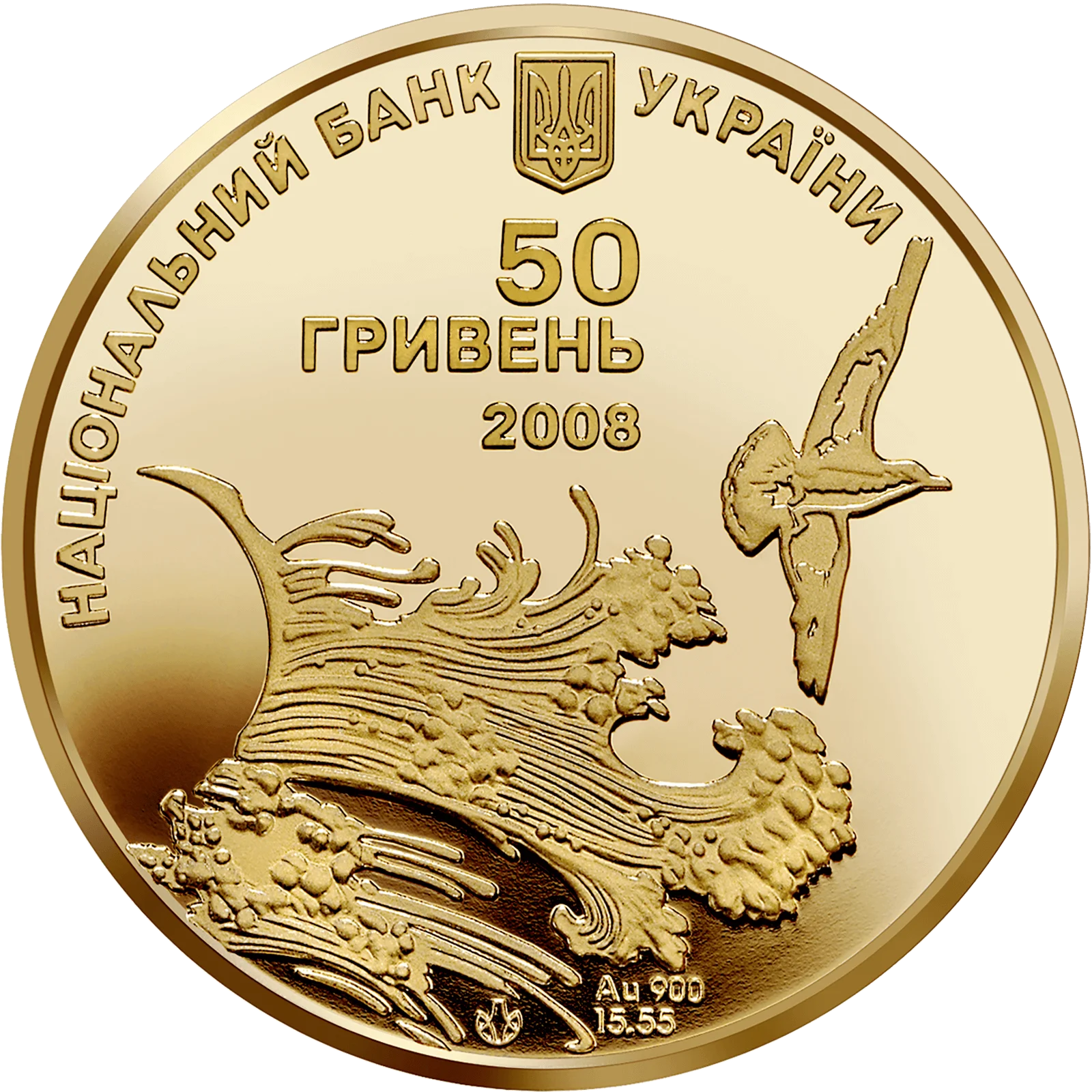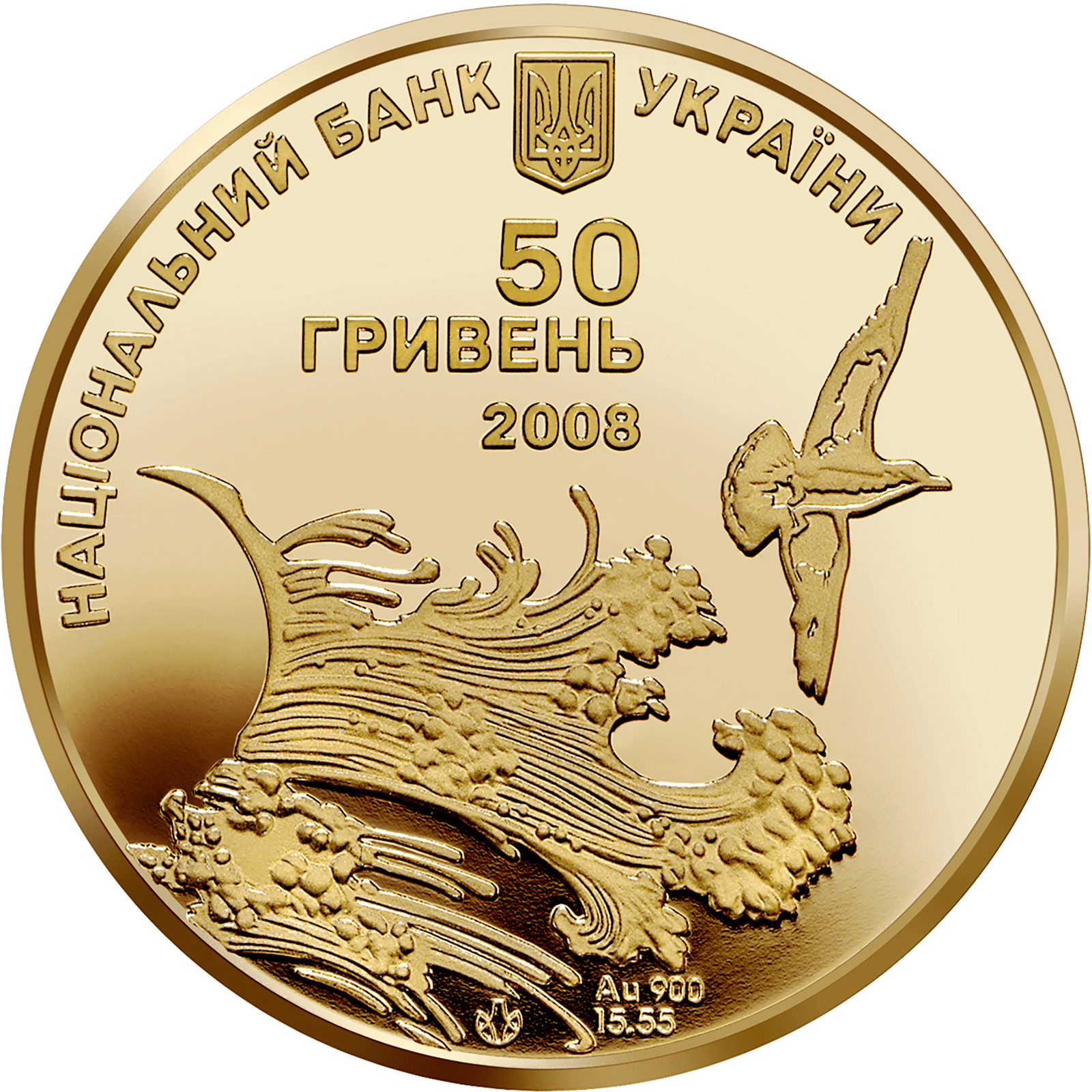 На аверсі монети зображено морську хвилю і чайку, угорі - малий Державний Герб України та півколом напис - НАЦІОНАЛЬНИЙ БАНК УКРАЇНИ, розміщено написи: 50/ ГРИВЕНЬ/ 2008 а також позначення металу, його проби Au 900, маси в чистоті - 15,55; розміщено логотип Монетного двору Національного банку України.