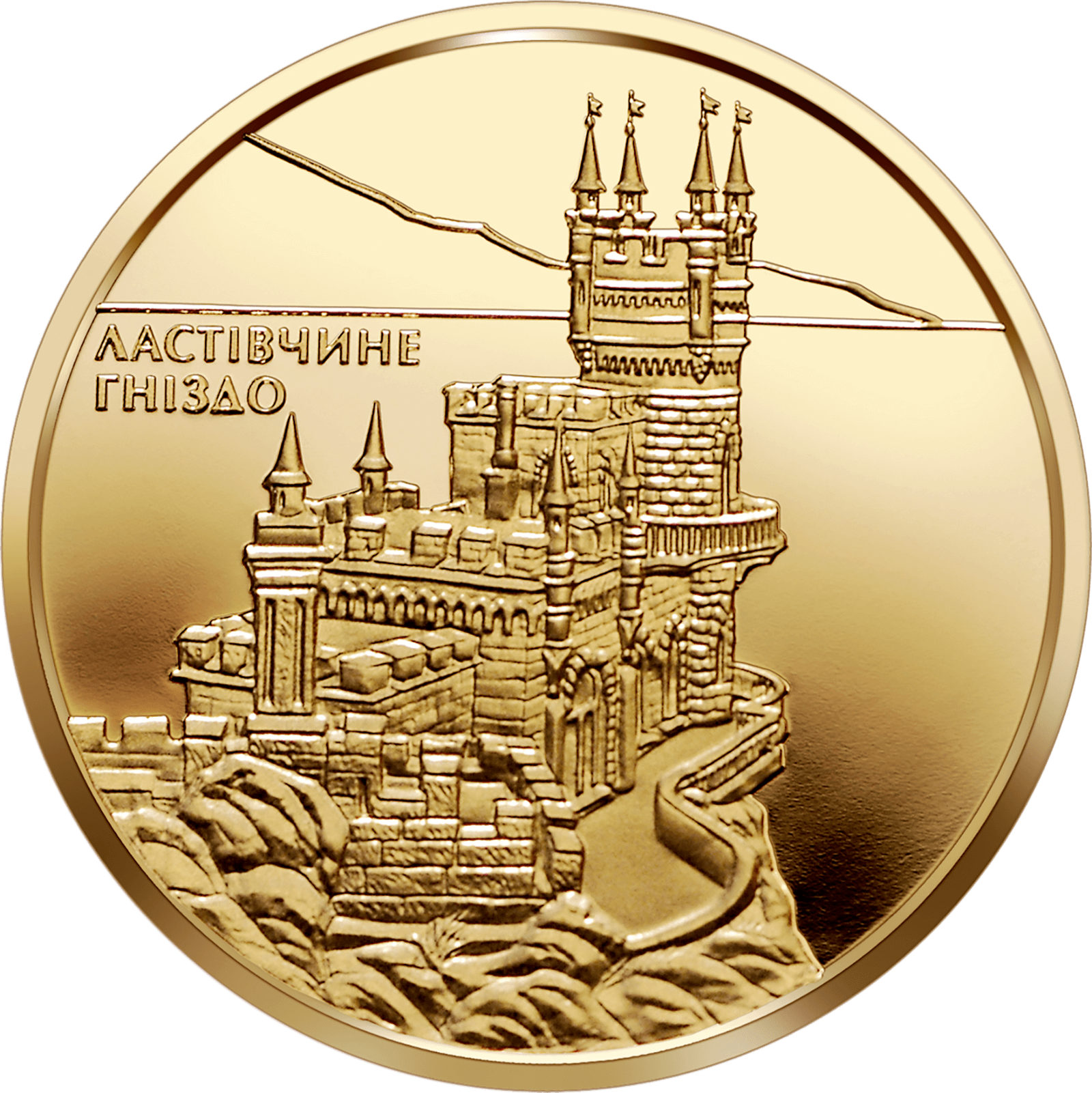 На реверсі монети на тлі гори і моря зображено пам`ятку архітектури - Ластівчине гніздо на скелі та розміщено напис - ЛАСТІВЧИНЕ ГНІЗДО (ліворуч).