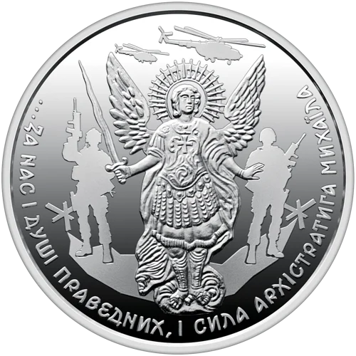 Пам’ятна монета “Архістратиг Михаїл”, присвячена одному з головних архангелів, відомому як архістратиг Михаїл, що в перекладі з грецької означає “головнокомандувач”. Серед віруючих це один із найшанованіших біблійних персонажів, який очолює “небесне воїнство ангелів” і є покровителем звитяжців, які борються за праведне діло. Поважне ставлення до архістратига Михаїла зберігається з часів Київської Русі до сьогодення. Він став символом небесного захисту київських князів, а пізніше його шанування було закріплене в топоніміці – у назвах церковних споруд, а також у геральдиці – на гербах Києва, Київського воєводства та Київської губернії. Сьогодні образ архістратига Михаїла присутній в атрибутиці українських військ і знову символізує боротьбу зі злом.