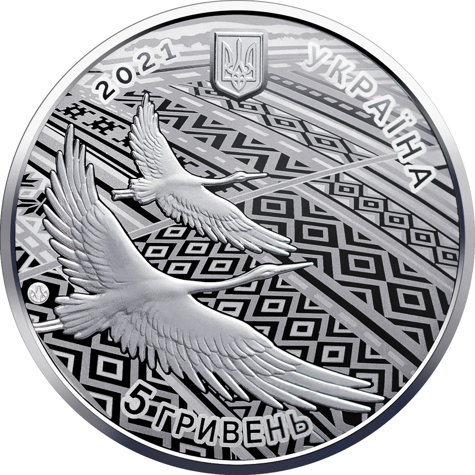 На аверсі монети розміщено: композицію, що символізує Україну, – безкрайні мальовничі поля у вигляді стилізованих орнаментів, над якими летять лелеки – один із символів України, на тлі якої вгорі малий Державний Герб України, написи: УКРАЇНА (праворуч півколом), 2021 (ліворуч від герба), номінал монети – 5 ГРИВЕНЬ (унизу півколом); логотип Банкнотно-монетного двору Національного банку України (ліворуч).
