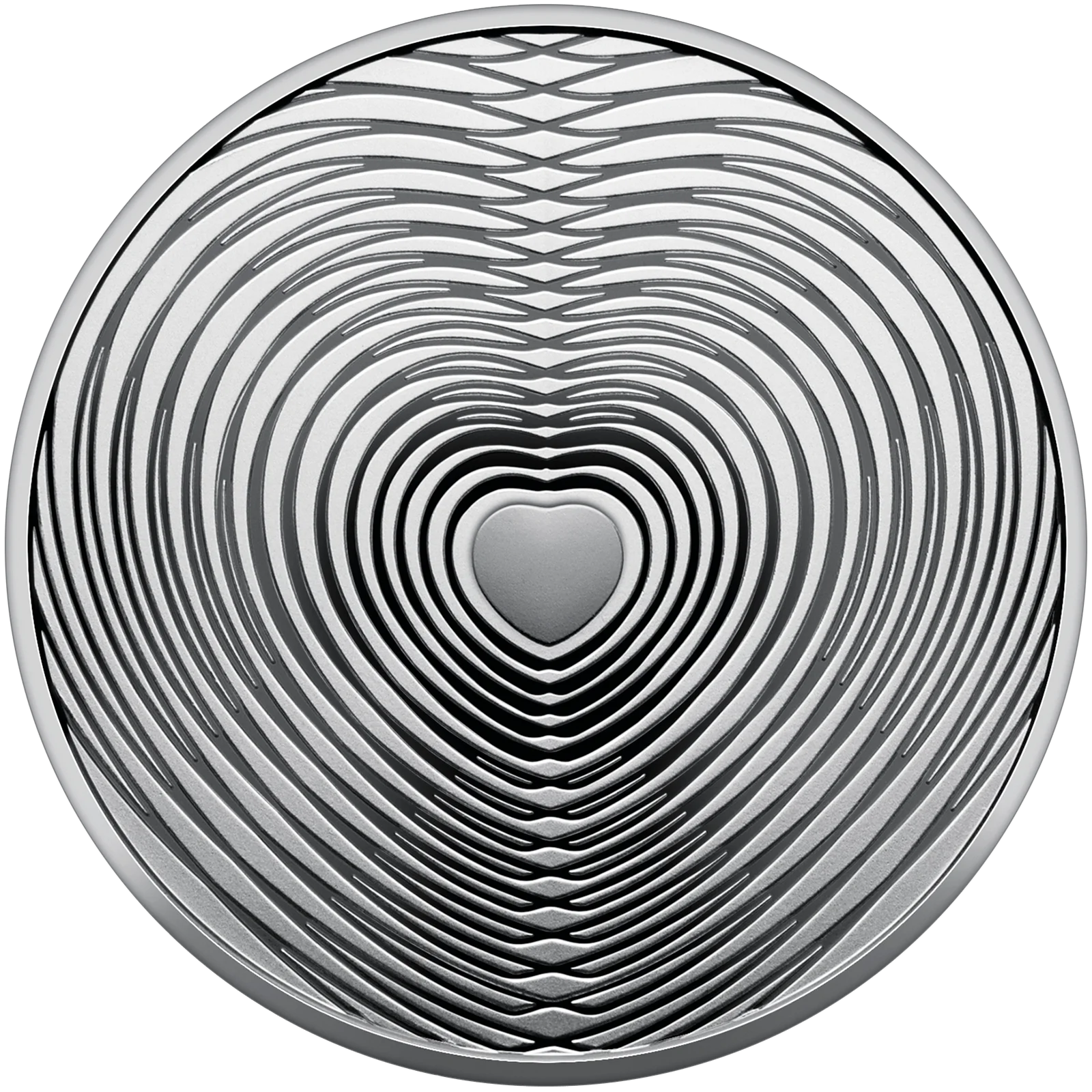 На реверсі монети на дзеркальному тлі рельєфно зображено серце, від якого рівномірно розходяться хвилі. Стилізована композиція є символом щирого та всеосяжного кохання, вібрації якого сягають найпотаємніших глибин душі.