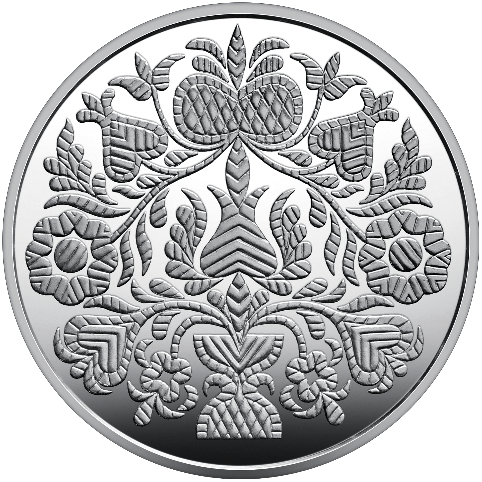 На реверсі монети на дзеркальному тлі рельєфно відтворено орнамент, який уособлює сімейні цінності. У центрі орнаменту розташовані взаємопов’язані елементи, які відображають глибокий символізм родинних зв’язків. Ця сім’я складається зі знаків чоловіка, жінки та їхнього спільного дому. По обидва боки центральної вертикалі розташовані символи дітей. Усі разом вони створюють повноцінний орнамент, що відображає сімейну єдність та гармонію.