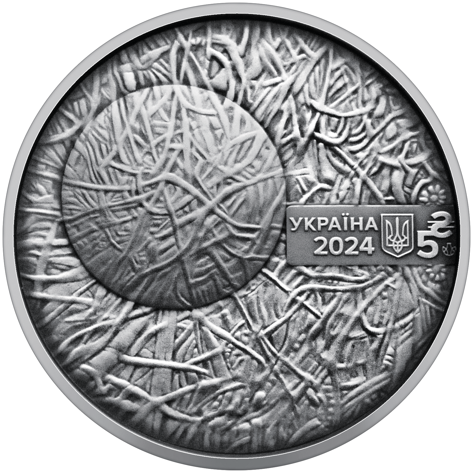 На аверсі монети в центрі композиції зображено фрагмент картини “Пробудження”, створеної Іваном Марчуком у 1992 році. Мотив дизайну – коло, що асоціативно нагадує сонце, символізуючи джерело життя, енергії та розвитку. Праворуч від композиції на матовому тлі розміщено написи УКРАЇНА, номінал 5 та графічний символ гривні ?. Також зазначено рік карбування – 2024, малий Державний Герб України та логотип Банкнотно-монетного двору Національного банку України.