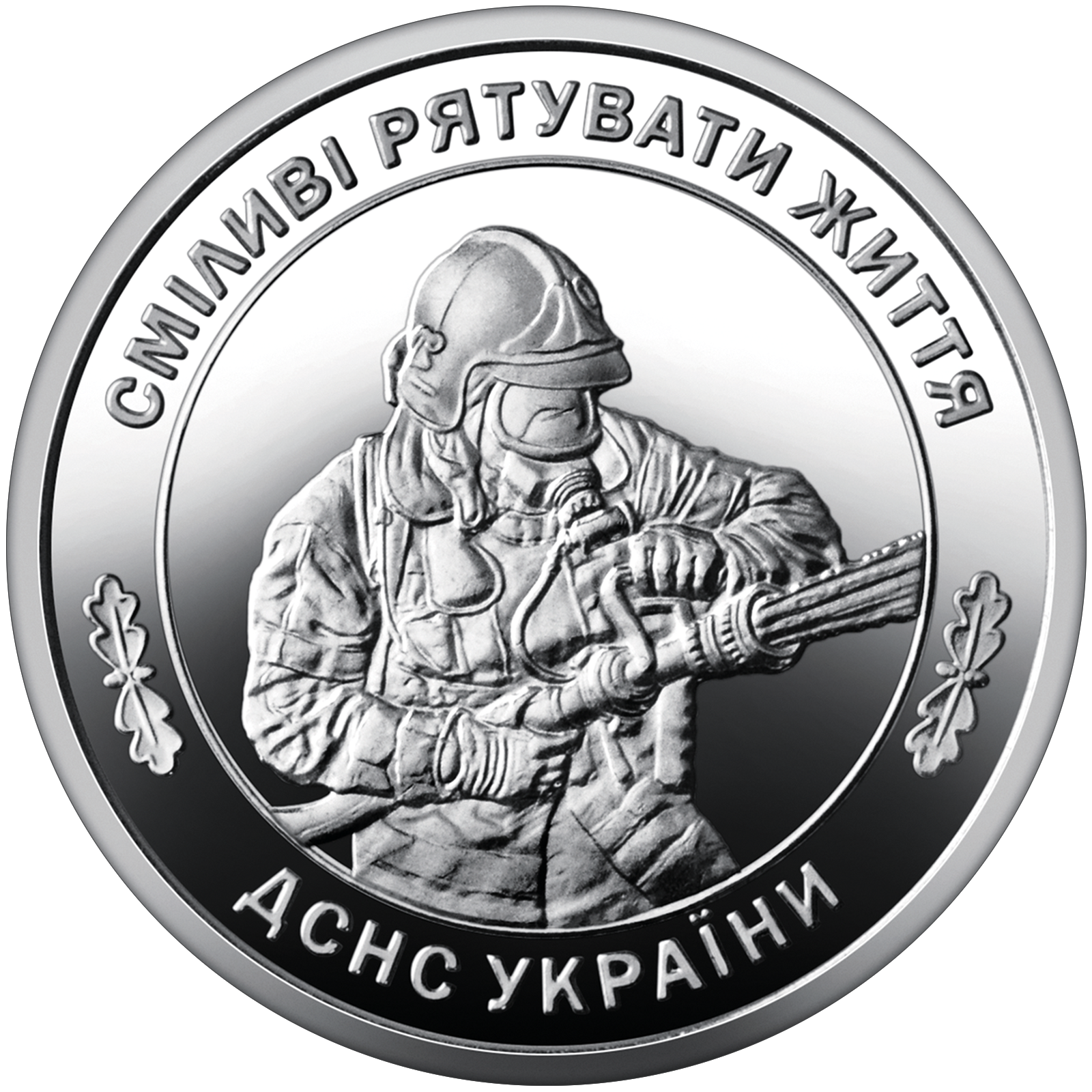 На реверсі монети зображено рятувальника ДСНС у повному екіпіруванні, який тримає в руках пожежний рукав та пожежний ствол. По колу розміщено написи: угорі – СМІЛИВІ РЯТУВАТИ ЖИТТЯ – гасло, що відображає основну місію ДСНС; унизу – ДСНС УКРАЇНИ. Між написами з обох боків зображено стилізовані дубові листки – елементи емблеми ДСНС.
