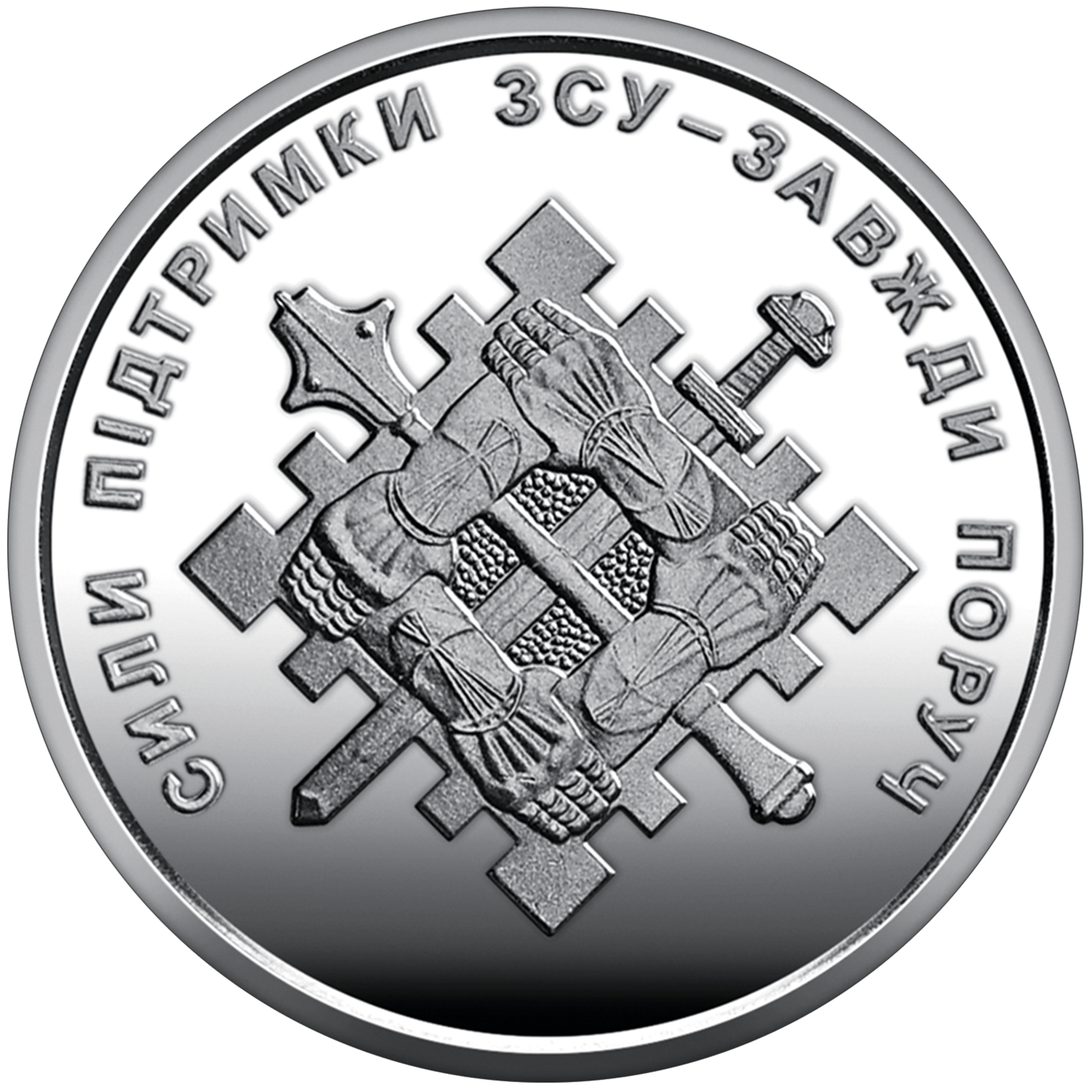 На реверсі монет розміщено емблему Сил підтримки ЗСУ; по колу написи: СИЛИ ПІДТРИМКИ ЗСУ – ЗАВЖДИ ПОРУЧ (угорі).