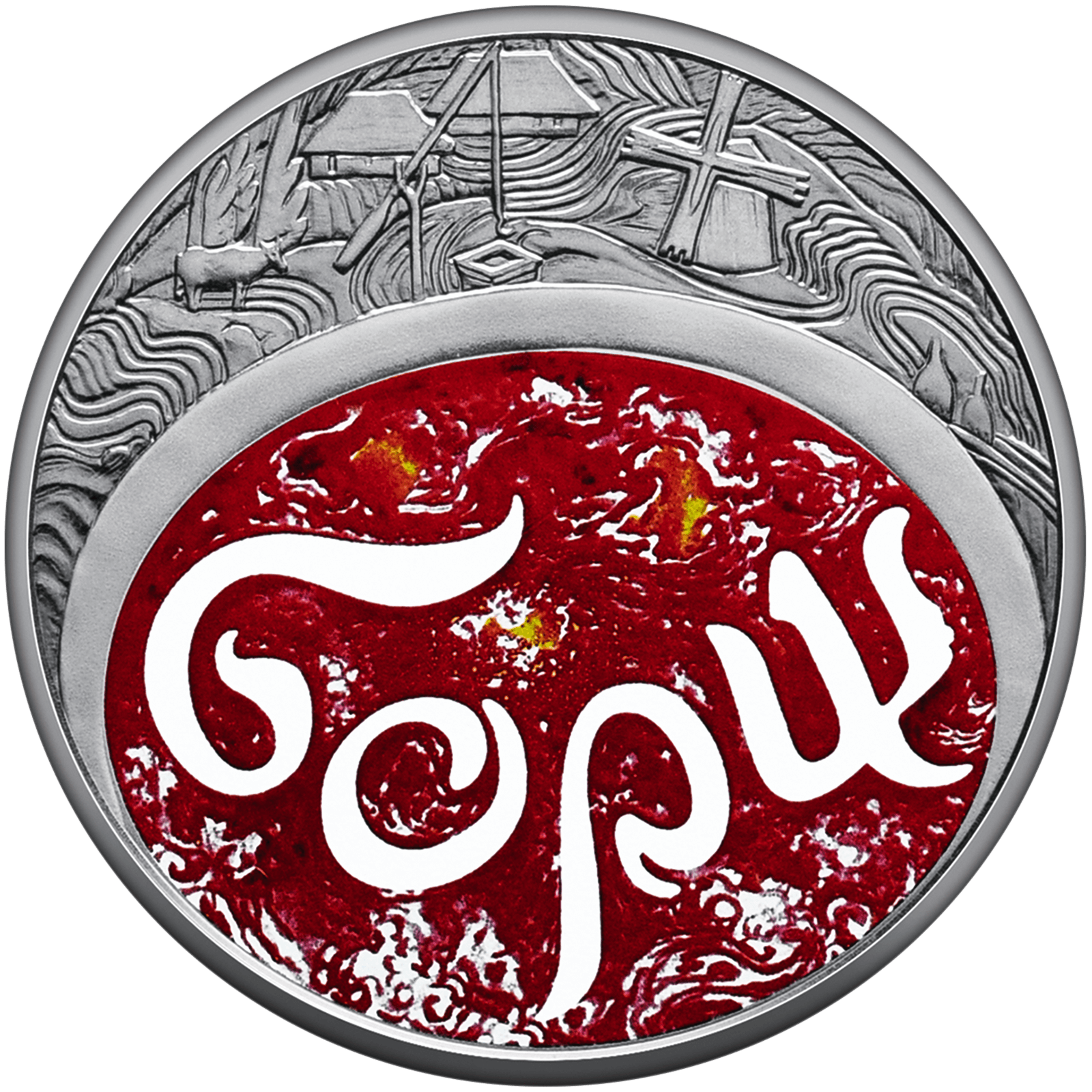 На реверсі монет розміщено стилізовану композицію, що наповнена традиційним українським колоритом та побутом: у центрі зображено тарілку з борщем, що неначе “бурхливе озеро” символізує глибинну українську культуру і традиції, напис – БОРЩ (елемент оздоблення – тамподрук).